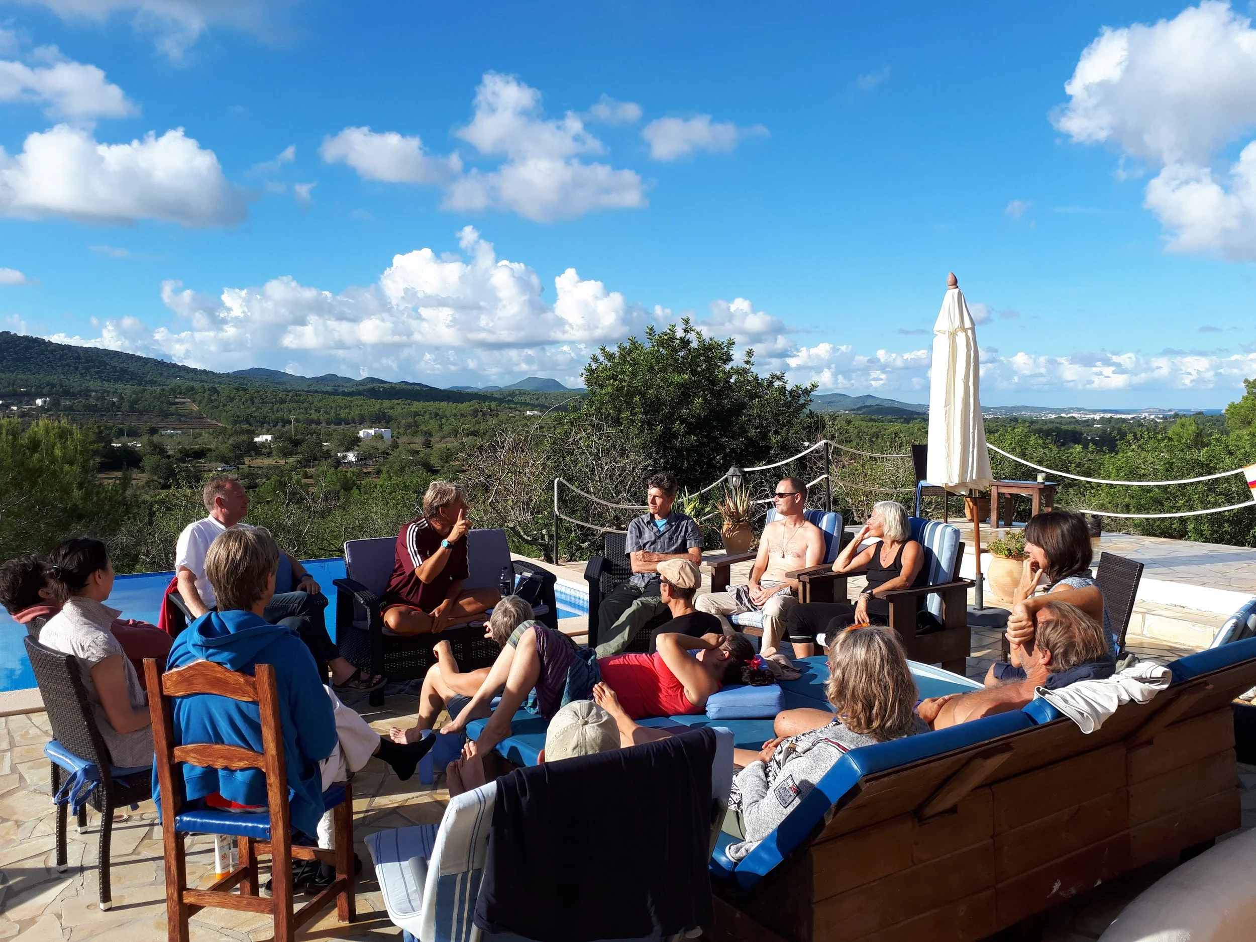 Enkele keren per maand zijn er Intensives in de vorm van een satsang-dag of weekend en 4x per jaar is er een week-intensive in het binnen- of buitenland. In de Intensives die we organiseren op eilanden als Ibiza, Menorca en Schiermonnikoog, stap je bewust uit je eigen omgeving. De bedoeling is je mee te nemen UIT de gewoontevorming die je je eigen leven noemt. De open levende ruimte in. Daar waar het makkelijk is te spelen, te ontdekken, te (levens)stromen, te verdampen. Natuurlijk is dat altijd en overal, maar meestal hebben mensen daar in hun dagelijkse leven te weinig aandacht voor en is een Intensive een bijzondere ‘treat’. Alsof je een kiertje opent, zeg maar. Daarom zijn de teachings ook in de natuur en in aanraking met de elementen; ik noem dat de Avadhuta teachings.